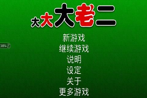 大老二快下载最好玩的大老二!! 大老二或称锄大弟、阶级斗争、步步高升是一个在大中华地区(尤其是广东、马来西亚、新加坡、香港、澳门及台湾)流行的扑克牌游戏。通常每局为三至四位玩家,每人十三张牌,最先打完手上的牌便胜出游戏。游戏规则可在游戏里找到。游戏语言(中文)