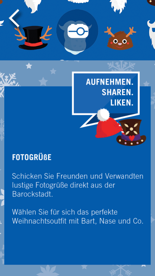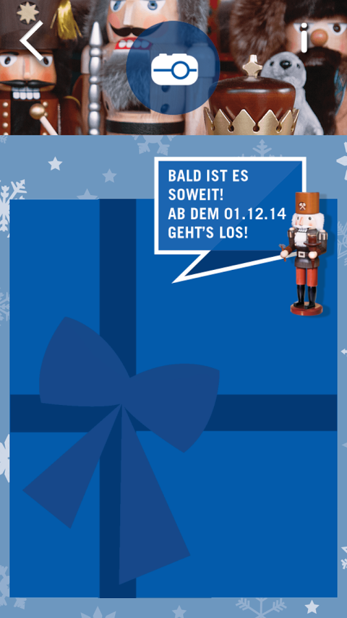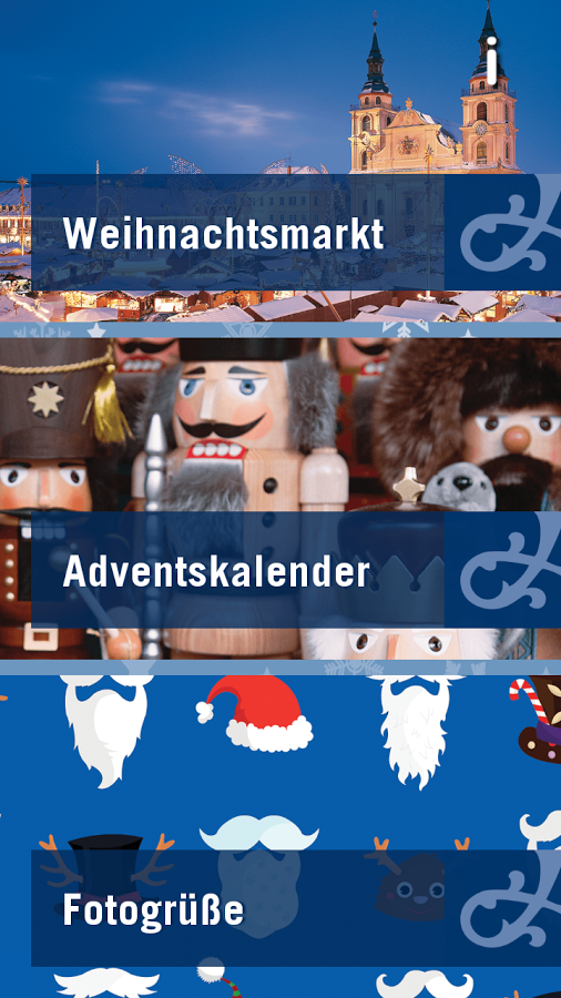Die neue, kostenlose Ludwigsburg Weihnachts-App mit Adventskalender.Unsere Ludwigsburg Weihnachts-App versüßt Ihnen die Adventszeit mit tollen Features:AdventskalenderHier werden Sie täglich überrascht mit spannenden Anekdoten aus Ludwigsburg, Bastelanleitungen, barocken Rezepten, beson- deren Aktionen u.v.m.FotogrüßeSchicken Sie Freunden und Verwandten lustige Fotogrüße direkt aus der Barockstadt. Wählen Sie für sich das perfekte Weihnachtsoutfit mit Bart, Nase und Co.Alles rund um den WeihnachtsmarktMit der neuen App sind Sie immer am Puls des Geschehens, denn Sie haben alle wichtigen Informationen zu Öffnungszeiten, Bühnenprogramm und den Ausstellerplan auf einen Blick parat.• App runterladen• Postkarte mit Nussknackerbild z.B im MIK Ludwigsburg (MuseumInformationKunst) besorgen oder online auf www.ludwigsburg.de downloaden• Bild scannen• Jeden Tag aufs Neue eine Überraschung erleben!