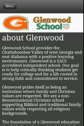 Glenwood School provides the Chattahoochee Valley of west Georgia and east Alabama with a positive learning environment. Glenwood is a SACS accredited independent school. Our goal is to help critically thinking students get ready for college and for a life rooted in strong faith and commitment to service. Glenwood prides itself as being an institution where family and Christian values are respected. We are a non-denominational Christian school supporting Biblical and traditional family values while respecting all religious backgrounds. The foundation of a Glenwood education should help students act in their beliefs for the betterment of their lives, their church, and their global community.
