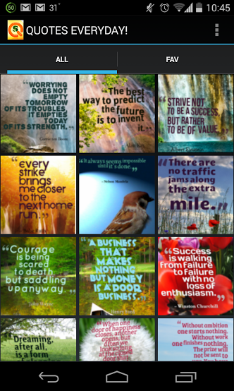 成功,励志和动机行情每日剂量与大自然的惊人背景。 产品特点: 1.见“报价的日子”从应用程序的主菜单。 2.标记收藏行情和熟语! 3.每天获得新的报价,开始新的一天,个性化的定时通知。 4.如壁纸和背景, 5.分享到电子邮件,Facebook和Twitter的,闪烁,远足,WhatsApp的... 6.滑动的手势来浏览行情 7.进入“世界顶级50+”的报价。 关键词:激励,鼓舞人心,报价,报价,,著名,辉煌,动机,生活,自然,灵感,工作,成功,领导,激励,最好的作家。 评分... 提供反馈!