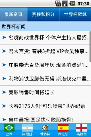 1.获取世界杯最新新闻,包括各个强队的最新新闻;