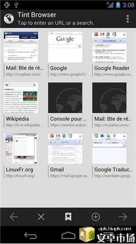 Tint Browser是一款小巧的浏览器。1.开源2.支持flash3.速度快4.支持插件(屏蔽广告及firefox书签导入-百度盘)5.搜索引擎可以自定义url6.支持无痕浏览7.可以关闭位置8.支持全屏浏览9.UI很有holo风10.可以自定义首页的页面卡数目及首页网站11.权限相当少,只有4个,都不算很敏感12.没有常驻后台,退出基本无残留