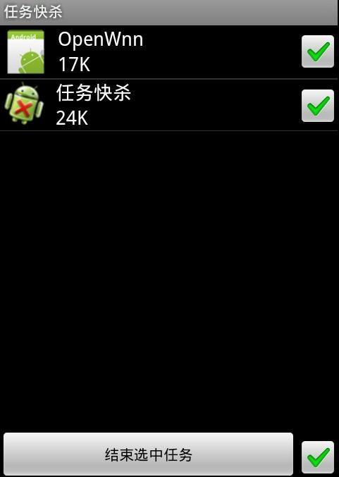 这款"任务快杀"可以帮助你更好的,快速的管理你手机中正在运行的软件。你可以根据实际需要,结束没有必要运行的程序,以节约电量。
