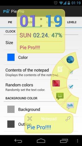 * 可以自定义时钟的尺寸,自定义时钟面板的颜色,时钟可以显示记事本中的内容。