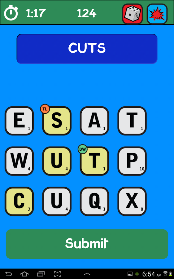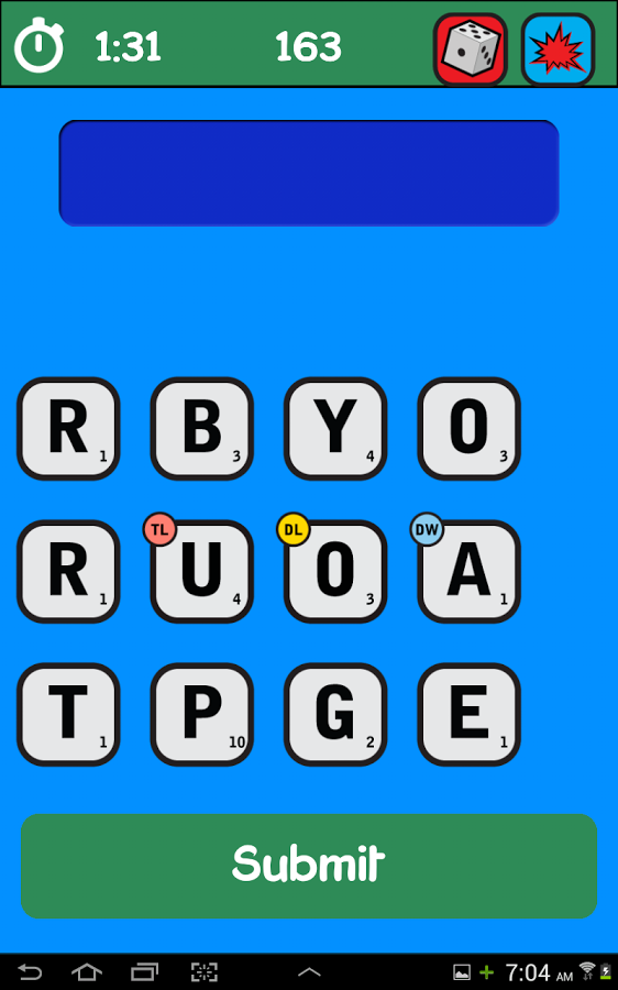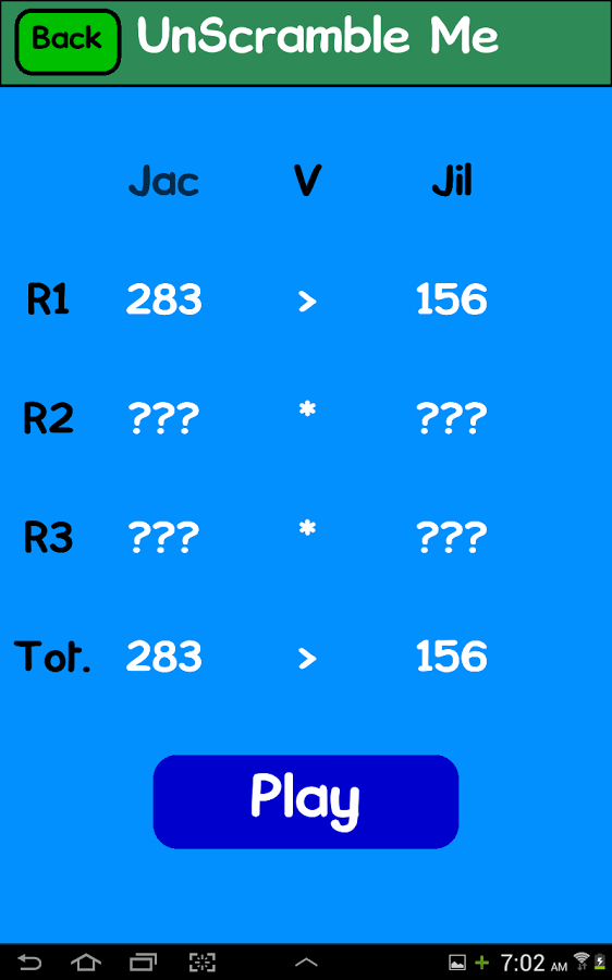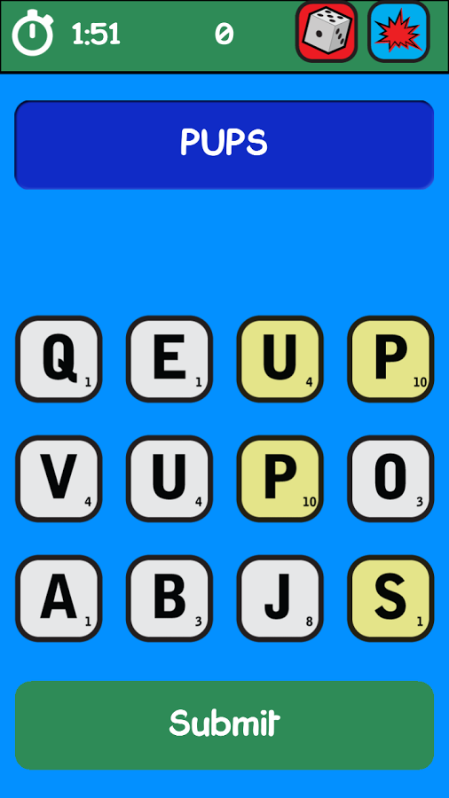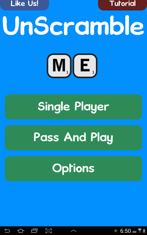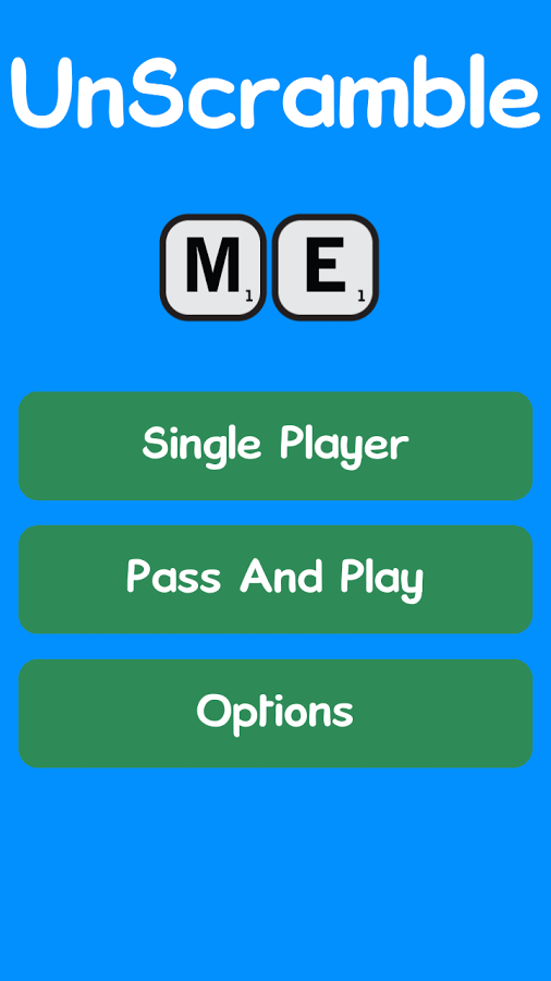 UnScramble Me is a great a spin on a classic game of boggle. Play by yourself or with a friend and try to beat each other's scores. Spell as many words as you can within two minutes. Try to use the power ups provided to get a better score. As the rounds progress you get more points for using double word, double letter, triple letter, and triple word letters. Race against the clock and tap at full speed. Join the many playing UnScramble Me. Wonderful high resolution custom made graphics.