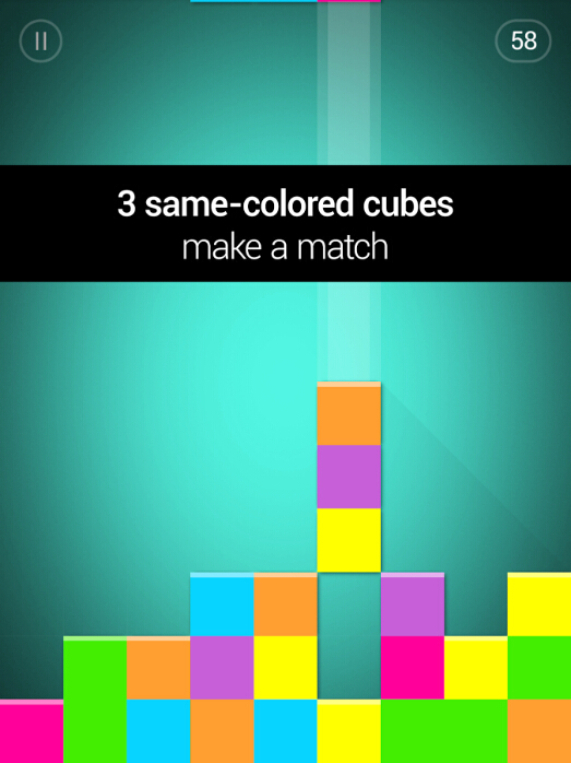 《颜色匹配 Qubies》是一款有趣的休闲游戏。游戏基本操作来自于俄罗斯方块,不过消除方式不同。玩家通过点击屏幕左右两侧,控制下落的方块转换方向,下滑屏幕,可以加速方块落下。随着游戏的进行,方块下落的速度会越来越快,难度也就也来越高了。