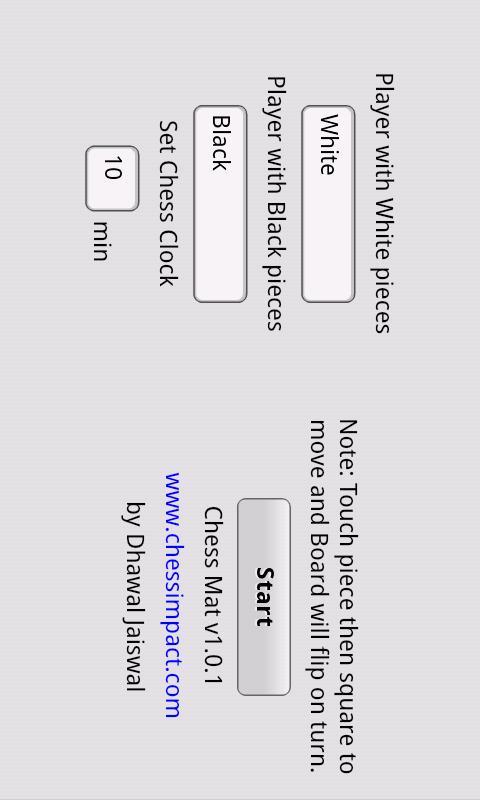 Play chess game keeping device in middle against human.Note: Touch piece then square to move. Board will rotate after each move so you can keep device between you can your opponent in landscape.