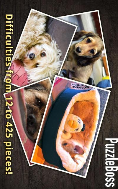 益智老板自豪地介绍更多小狗拼图的免费版本。我们的自由拼图给你16在12 , 48或96个可完全高清拼图。如果你有兴趣在玩我们难度160 , 230和425片模式,或者你不喜欢的广告看看我们的完整版高级拼图。PuzzleBoss高级拼图是你的Nexus ,三星Galaxy等Android平板电脑的最佳拼图。我们的拼图沿与个别球员个人,整个家庭提供娱乐,困难从12件上升到425 ,并选择使拼图更容易或更难。在这个版本中,我们已经推出了一些伟大