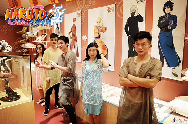 看来5位同学都是有备而来啊,听说是实境展夏日祭,也自备cos服,照着墙上的海报摆起了Pose,姿势虽然不到位,玩的开心才是最重要的嘛。